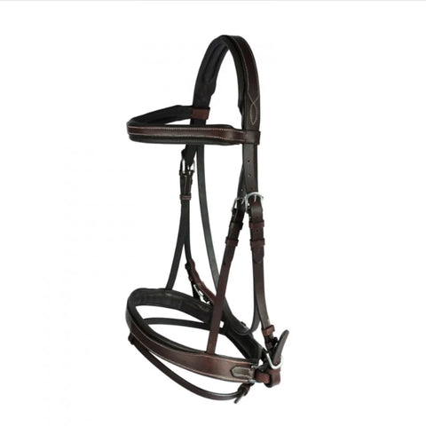 Try a modern twist on a hunt-style classic with the Horze Venice Snaffle Bridle.