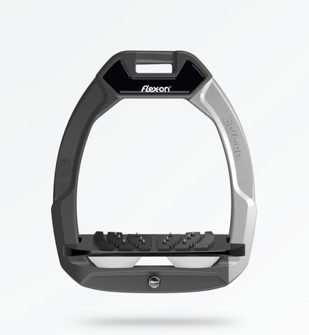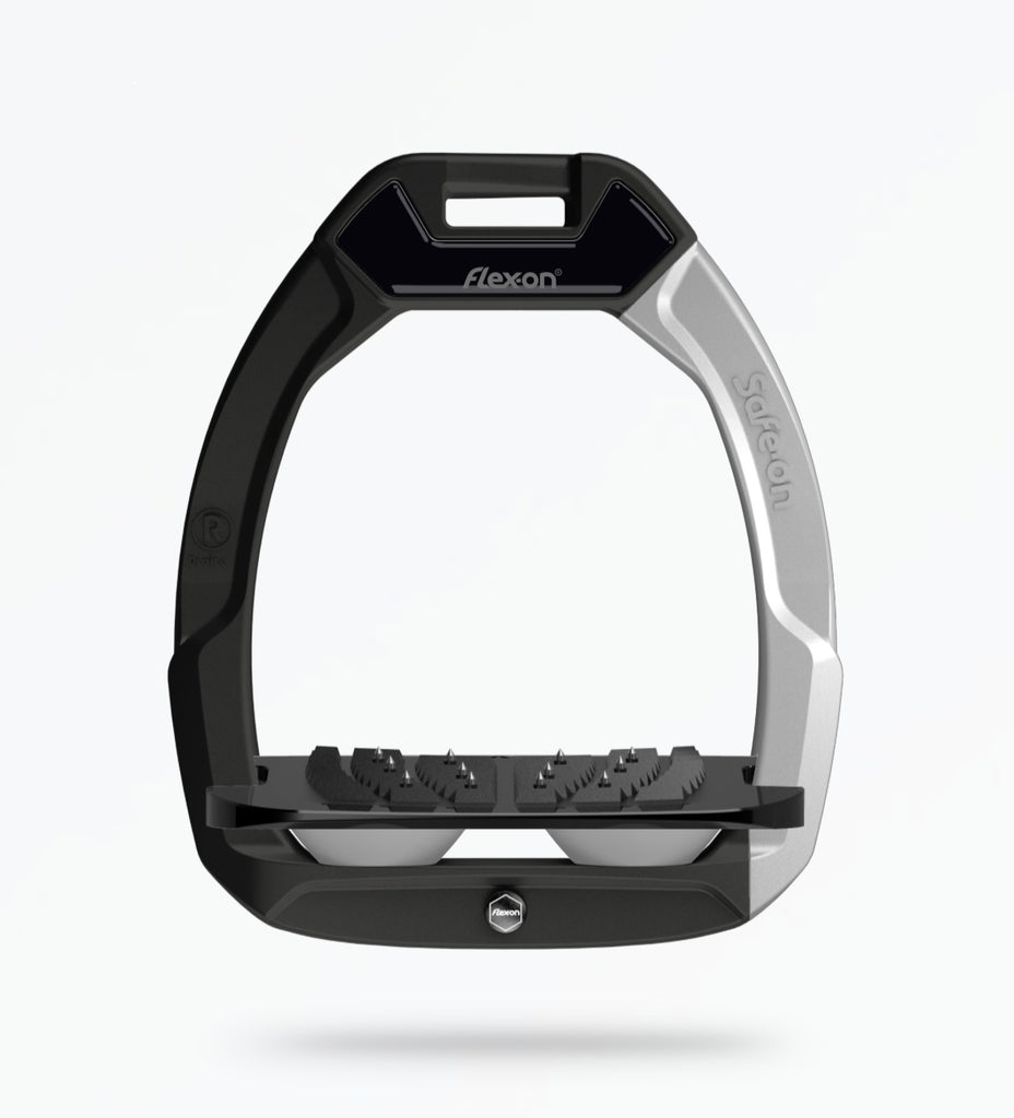 New safety stirrup version of Flex-On's famous stirrups, designed to release on the side in the event of a serious fall, and then be pushed back together. Based on the same design as other Flex-on stirrups scientifically proven to provide help with riding position and reduce strain on the leg muscles and joints. These have to be tried to be believed...
